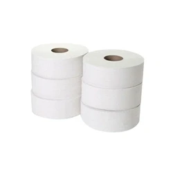 Jumbo toilet roll for long lasting use. 2 ply for added comfort. Suitable for standard jumbo toilet roll dispensers. Suitable for public bathrooms and workplaces. Length: 300 metres. Core diameter: 60mm. Pack of 6 rolls. Colour: White.