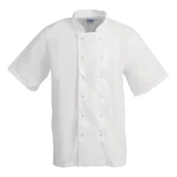 Chest Size: 48"-50" / 122cm-127cm. Polycotton lite twill - 80% polyester, 20% cotton. White. Short sleeves keep staff cool in sweltering heats. Suitable for commercial laundering - making cleaning easy. White colourway offers a classic, smart look.