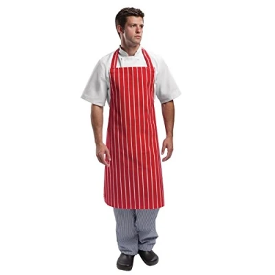 Whites Chefs Clothing A532 Bib Apron with Red and White Stripe, 28" Width, 38" Length