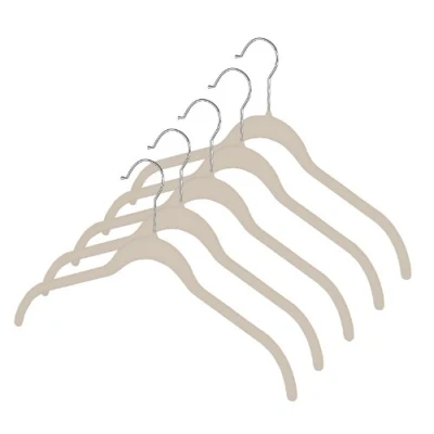 Whitmor Flocked Spacemaker Hanger Collection Dress/Shirt Hangers, Set of 5 Beige