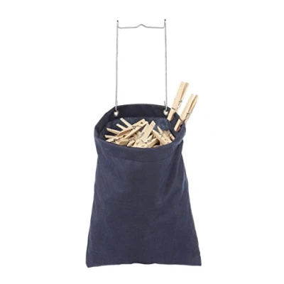 Metal hanger with rust resistant grommets Hanging bar for clothesline, towel bar or shower curtain bar Easy hand access, holds over 200 medium sized clothespins Line-drying becomes less of a chore with this easy access clothespin bag Easily contain and locate clothespins when you need them.Dimensions 11" x 13"
