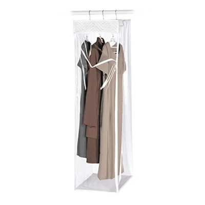 Hanging garment bag offers storage and protection from dust and damage Breathable panels to keep clothes fresh and clean Easily set-up; metal hooks hang from closet rod or garment rack Polypropylene closet storage with reinforced seams for additional strength and support International products have separate terms, are sold from abroad and may differ from local products, including fit, age ratings, and language of product, labeling or instructions.