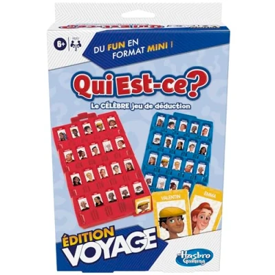 PORTABLE VERSION OF THE GAME WHO IS IT? : It's the same classic game, but in a compact format. The game Who is it? Travel Edition is a portable mini version of the game Who is it?for fun on the road. Suitable for ages 6 and up FUN TRAVEL GAME FOR KIDS: Easy to set up, this travel game Who is it? Travel Edition for 2 Players is a captivating game for car, plane or train trips, as well as camping and holidays EASY TO STORE: This travel game includes built-in storage to organize game nights virtually anywhere A GUY GAME: As in the large-format game, each player tries to guess their opponent's Mystery character. We ask questions to find characteristics and discover the character Mystery A GIFT FOR TRAVEL: This guessing game for kids is a great gift for board game fans, kids and adults. It is also a great little gift that fits perfectly into Easter baskets, Manufacturer: Hasbro