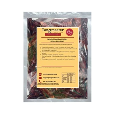 These chillies come in at 15,000 - 50,000 on the scoville scale. Predominately grown and used in china, these dried chillies are ideal for adding a kick to any dish. Add whole to curries, rice dishes or sauces. Chop and combine with other ingredients to make a fiery dumpling filling. These are often referred to as facing heaven chillies as they grow upwards.