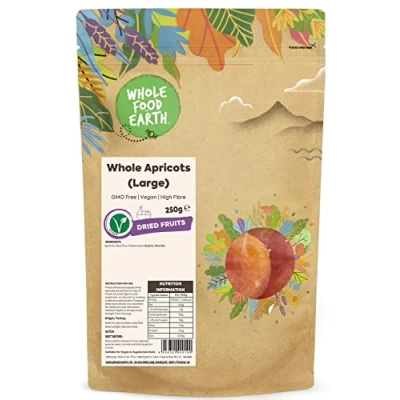 ✔ A WORLD OF GOODNESS: In a world full of fad diets, quick bites, and intricate recipes, don’t forget about the wonders of simple, nourishing food. We actively seek sustainable sources for our goods, asking our suppliers the tough questions that we know matter to our customers and making sure all our products are 100% GMO Free. We follow strict hygiene processes to provide the best quality ingredients and have achieved a maximum of 5 Start food hygiene ratings. ✔ Whole Apricots (Large): Fresh Turkish apricots are used to make dried whole apricots. These are hand-picked, cleaned in pure water, sun-dried, hand-pitted, graded for size, and classed based on common defects. They are bright orange coloured. They last for a long time. It was discovered in the Ottoman, Persian, and Russian empires before the twentieth century, but Turkey is now the leading producer. Dried apricots from the Mediterranean or Turkey are normally dried whole before pitted. ✔ HIGH-QUALITY INGREDIENTS: Dry apricots are extremely beneficial to everyone since they include a variety of vitamins. Apricots are also high in carotene, which is essential for healthy vision. These make excellent snacks or mixed with muesli, cereals, oatmeal, and other foods. You'll find them to be softer, moister, and more flavorful. When eaten, it has a sweet and somewhat tangy flavour and becomes soft. All dried apricots are vegan and vegetarian friendly. ✔ INSTRUCTION FOR USE: These delicious chopped dried apricots are perfect on top of muesli and porridge to add sweetness, or why not try making a delicious apricot jam. Chopped dried apricots are also excellent for adding to your Moroccan themed tagine or simply snack straight from the bag. ✔ JUST THE GOOD STUFF / FULLY RECYCLABLE PACKAGING: We believe that good food shouldn’t cost the earth, as such, sustainability matters to us dearly. That’s why we work tirelessly to find sustainable solutions throughout our business. We rolled out all-new 100% recyclable packaging on Wholefood Earth products. The new packaging is apt for kerbside recycling. ✔ OUR STORY: Thank you for knowing It's what's on the inside that counts. For wanting a future without toxins in the food your children eat. For protecting the biodiversity that nurtures animal habitats and makes crops thrive. From everyone here at Wholefood Earth, thank you for using your buying power to make meaningful, informed choices that will continue to nourish our people and our planet today, tomorrow, and forever. We're here for a healthier earth, a sustainable earth, a wholesome earth.
