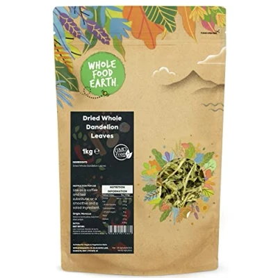 ✔ A WORLD OF GOODNESS: In a world of fad diets, quick bites, and intricate recipes, don’t forget about simple, nourishing organic wholefoods. Wholefood Earth is certified organic and has officially been awarded a 5-star Food Hygiene Rating ✔ ORGANIC WHOLE DANDELION LEAF: The leaves of the Dandelion plant are dried and are obtained sustainably. The dandelion is one of the most well-known and highly prized meadow flowers in Morocco. ✔ HIGH-QUALITY INGREDIENTS: The dandelion leaf and root contain vitamins, as well as plant-based protein and fibre, and a variety of minerals. Dandelion is regarded as a "bitter tonic,". Dandelion is a highly nutritious plant that is abundant in vitamins, minerals, and fibre from root to leaf. It has been used for ages to treat a range of diseases and medical issues and is also known as traditional herbal medicine. ✔ JUST THE GOOD STUFF / FULLY RECYCLABLE PACKAGING: We intend to get the purest gifts of Mother Nature from all over the world and offer to our customers the purest, organic, and healthy gifts of nature. Our products are gathered from the best origins. The new packaging is apt for kerbside recycling and resealable for Long Lasting Freshness. ✔ OUR STORY: We believe that Mother Nature knows best when it comes to quality, nutrition, and taste. We actively seek sustainable sources for our goods, asking our suppliers the tough questions that we know matter to our customers