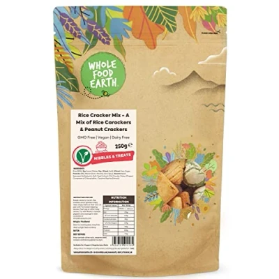 ✔ A WORLD OF GOODNESS: In a world full of fad diets, quick bites, and intricate recipes, don’t forget about the wonders of simple, nourishing food. We actively seek sustainable sources for our goods, asking our suppliers the tough questions that we know matter to our customers and making sure all our products are 100% GMO-Free. We follow strict hygiene processes to provide the best quality ingredients and have achieved a maximum of 5 Start food hygiene ratings. ✔ Rice Cracker Mix - A Mix of Rice Carackers & Peanut Crackers: This Asian rice cracker snack combination is a delectable mix of soy, sesame, and a hint of sweetness. This colourful, delectable rice cracker combo covers almost all of your culinary bases! You can use Rice Cracker Mix in your cooking in addition to eating it straight from the bag. These amusing alternatives will appeal to those who enjoy experimenting with recipes. ✔ INSTRUCTION FOR USE: Sweet, savoury crunch, rice crackers are a glorious crispy treat. Enjoy them on their own, or pair them with Far Eastern dipping sauces, fresh veg, or other tasty snacks. Try with Mama’s roasted peppers and aubergine relish available at Wholefoodearth.com ✔ JUST THE GOOD STUFF / FULLY RECYCLABLE PACKAGING: We believe that good food shouldn’t cost the earth, as such, sustainability matters to us dearly. That’s why we work tirelessly to find sustainable solutions throughout our business. We rolled out all-new 100% recyclable packaging on Wholefood Earth products. The new packaging is apt for kerbside recycling. ✔ OUR STORY: Thank you for knowing It's what's on the inside that counts. For wanting a future without toxins in the food your children eat. For insisting on the accountability that traces food back to its source. For protecting the biodiversity that nurtures animal habitats and makes crops thrive. And, from everyone here at Wholefood Earth, thank you for using your buying power to make meaningful, informed choices that will continue to nourish our people and our planet today, tomorrow, and forever. We're here for a healthier, sustainable, and wholesome earth.