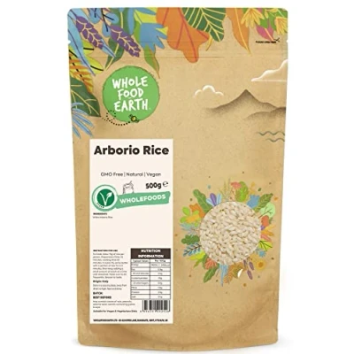✔ A WORLD OF GOODNESS: In a world full of fad diets, quick bites, and intricate recipes, don’t forget about the wonders of simple, nourishing food. We actively seek sustainable sources for our goods, asking our suppliers the tough questions that we know matter to our customers and making sure all our products are 100% GMO-Free. We follow strict hygiene processes to provide the best quality ingredients and have achieved a maximum of 5 Start food hygiene ratings. ✔ Arborio Rice: Arborio rice is short-grain rice from Italy. The rounded grains are firm, creamy, and chewy when cooked, compared to other rice kinds. It has a starchy flavour that complements other flavours well. Arborio rice is commonly used in risotto, although other kinds such as Carnaroli, Maratelli, Baldo, and Vialone Nano are also suited. Rice pudding is commonly made using arborio rice. ✔ HIGH-QUALITY INGREDIENTS: Arborio rice can also be used to make sweet rice pudding or in a Paella in place of Spanish rice. Although it has more starch than regular long-grain white rice, this does not mean it has more carbohydrates. The grain has wonderful, creamy skin and is firm inside when cooked to perfection. Arborio Rice is natural, GMO-free, and vegan-friendly. ✔ INSTRUCTION FOR USE: To Cook: Allow 75g of rice per person. Preparation Time: 15 minutes, cooking time 30 minutes. In a pan fry some butter with a portion of rice for 2-3 minutes, then keep adding a small amount of stock at a time until absorbed. Make sure to stir frequently. Season to taste. ✔ JUST THE GOOD STUFF / FULLY RECYCLABLE PACKAGING: We believe that good food shouldn’t cost the earth, as such, sustainability matters to us dearly. That’s why we work tirelessly to find sustainable solutions throughout our business. We rolled out all-new 100% recyclable packaging on Wholefood Earth products. The new packaging is apt for kerbside recycling. ✔ OUR STORY: Thank you for knowing It's what's on the inside that counts. For wanting a future without toxins in the food your children eat. For protecting the biodiversity that nurtures animal habitats and makes crops thrive. From everyone here at Wholefood Earth, thank you for using your buying power to make meaningful, informed choices that will continue to nourish our people and our planet today, tomorrow, and forever. We're here for a healthier earth, a sustainable earth, a wholesome earth.