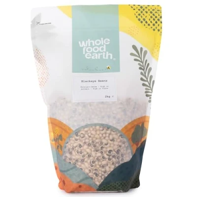 ✔ A WORLD OF GOODNESS: In a world full of fad diets, quick bites, and intricate recipes, don’t forget about the wonders of simple, nourishing food. We actively seek sustainable sources for our goods, asking our suppliers the tough questions that we know matter to our customers and making sure all our products are 100% GMO-Free. We follow strict hygiene processes to provide the best quality ingredients and have achieved a maximum of 5 Start food hygiene ratings. ✔ Black Eye Beans: The name "black-eyed peas" stems from the black eye-shaped mark on their inner curve, which gives them their moniker. For taste, black-eyed peas are often boiled with a ham hock or bacon. In addition, Garlic, tomatoes, onions, and vinegar all contribute to their flavour. ✔ HIGH-QUALITY INGREDIENTS: This is how to prepare perfect black-eyed peas. Peas should be sorted and rinsed. Bring 1-part peas to a boil with 2 parts water over high heat. Reduce heat to low and cook, covered, for 60-90 minutes, or until peas are tender when pierced with a fork. Protein, fibre, vitamins, and minerals are all abundant in black-eyed peas. It is quite beneficial to your health. Blackeye Beans are all-natural, GMO-free, and vegan-friendly. ✔ INSTRUCTION FOR USE: Fibre-rich protein source. Add to vegetable stews to add texture. To Cook: 1. Rinse beans 2. Soak for 4-6 hours (or overnight). 3. Place in a pot and cover with water above the beans. 4. Boil for 45-60 minutes and ensure that there's always water in the pot. 5. Add more as necessary. ✔ JUST THE GOOD STUFF / FULLY RECYCLABLE PACKAGING: We believe that good food shouldn’t cost the earth, as such, sustainability matters to us dearly. That’s why we work tirelessly to find sustainable solutions throughout our business. We rolled out all-new 100% recyclable packaging on Wholefood Earth products. The new packaging is apt for kerbside recycling. ✔ OUR STORY: Thank you for knowing It's what's on the inside that counts. For wanting a future without toxins in the food your children eat. For protecting the biodiversity that nurtures animal habitats and makes crops thrive. From everyone here at Wholefood Earth, thank you for using your buying power to make meaningful, informed choices that will continue to nourish our people and our planet today, tomorrow, and forever. We're here for a healthier earth, a sustainable earth, a wholesome earth.
