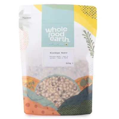 ✔ A WORLD OF GOODNESS: In a world full of fad diets, quick bites, and intricate recipes, don’t forget about the wonders of simple, nourishing food. We actively seek sustainable sources for our goods, asking our suppliers the tough questions that we know matter to our customers and making sure all our products are 100% GMO-Free. We follow strict hygiene processes to provide the best quality ingredients and have achieved a maximum of 5 Start food hygiene ratings. ✔ Black Eye Beans: The name "black-eyed peas" stems from the black eye-shaped mark on their inner curve, which gives them their moniker. For taste, black-eyed peas are often boiled with a ham hock or bacon. In addition, Garlic, tomatoes, onions, and vinegar all contribute to their flavour. ✔ HIGH-QUALITY INGREDIENTS: This is how to prepare perfect black-eyed peas. Peas should be sorted and rinsed. Bring 1-part peas to a boil with 2 parts water over high heat. Reduce heat to low and cook, covered, for 60-90 minutes, or until peas are tender when pierced with a fork. Protein, fibre, vitamins, and minerals are all abundant in black-eyed peas. It is quite beneficial to your health. Blackeye Beans are all-natural, GMO-free, and vegan-friendly. ✔ INSTRUCTION FOR USE: Fibre-rich protein source. Add to vegetable stews to add texture. To Cook: 1. Rinse beans 2. Soak for 4-6 hours (or overnight). 3. Place in a pot and cover with water above the beans. 4. Boil for 45-60 minutes and ensure that there's always water in the pot. 5. Add more as necessary. ✔ JUST THE GOOD STUFF / FULLY RECYCLABLE PACKAGING: We believe that good food shouldn’t cost the earth, as such, sustainability matters to us dearly. That’s why we work tirelessly to find sustainable solutions throughout our business. We rolled out all-new 100% recyclable packaging on Wholefood Earth products. The new packaging is apt for kerbside recycling. ✔ OUR STORY: Thank you for knowing It's what's on the inside that counts. For wanting a future without toxins in the food your children eat. For insisting on the accountability that traces food back to its source. For protecting the biodiversity that nurtures animal habitats and makes crops thrive. And, from everyone here at Wholefood Earth, thank you for using your buying power to make meaningful, informed choices that will continue to nourish our people and our planet today, tomorrow, and forever. We're here for a healthier, sustainable, and wholesome earth.
