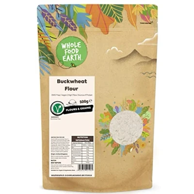 ✔ A WORLD OF GOODNESS: In a world full of fad diets, quick bites, and intricate recipes, don’t forget about the wonders of simple, nourishing food. We actively seek sustainable sources for our goods, asking our suppliers the tough questions that we know matter to our customers and making sure all our products are 100% GMO Free. We follow strict hygiene processes to provide the best quality ingredients and have achieved a maximum of 5 Start food hygiene ratings. ✔ Buckwheat Flour: Buckwheat is a plant farmed for its tiny, crispy groats, which have a characteristic triangular look and are both energising and nutritious. It's available all year and can be used as a substitute for rice or turned into a porridge. Other than raw buckwheat, there are other popular Buckwheat Preparations, the most popular of which are Buckwheat Flour and Roasted Buckwheat. ✔ HIGH-QUALITY INGREDIENTS: Buckwheat flour, which is commonly used in pancakes, is a high-fiber, high-protein alternative to white flour. Buckwheat flour outperforms white flour in every way, it can replace wheat flour in most (if not all) of your recipes! Buckwheat Flour is non-GMO and vegan-friendly. ✔ INSTRUCTION FOR USE: Use 25-50% buckwheat flour in pancakes and quick bread, 25% will give mild buckwheat flavour, and 50% will be more assertive. As a coating for meat or other protein before frying or baking. Makes great pliable wraps, Blini, Russian yeast-raised pancakes, French savoury crepes, and a galette. ✔ JUST THE GOOD STUFF / FULLY RECYCLABLE PACKAGING: We believe that good food shouldn’t cost the earth, as such, sustainability matters to us dearly. That’s why we work tirelessly to find sustainable solutions throughout our business. We rolled out all-new 100% recyclable packaging on Wholefood Earth products. The new packaging is apt for kerbside recycling. ✔ OUR STORY: Thank you for knowing It's what's on the inside that counts. For wanting a future without toxins in the food your children eat. For protecting the biodiversity that nurtures animal habitats and makes crops thrive. From everyone here at Wholefood Earth, thank you for using your buying power to make meaningful, informed choices that will continue to nourish our people and our planet today, tomorrow, and forever. We're here for a healthier earth, a sustainable earth, a wholesome earth.