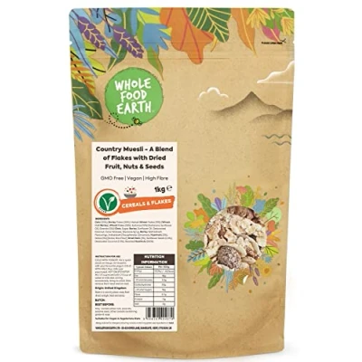 Wholefood Earth Country Muesli A Blend of Flakes with Dried Fruit, Nuts and Seeds 1 kg GMO Free High Fibre