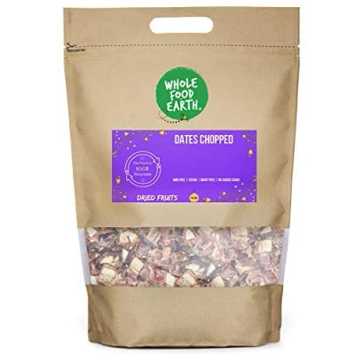 ✔ A WORLD OF GOODNESS: In a world full of fad diets, quick bites, and intricate recipes, don’t forget about the wonders of simple, nourishing food. We actively seek sustainable sources for our goods, asking our suppliers the tough questions that we know matter to our customers and making sure all our products are 100% GMO Free. We follow strict hygiene processes to provide the best quality ingredients and have achieved a maximum of 5 Start food hygiene ratings. ✔ Dates Chopped: The chopped date is a versatile ingredient that naturally lends sweetness to the dish. It works well in baked goods including cakes, muffins, granola bars, bread puddings, and energy bites. They go nicely with oatmeal and granola, as well as other dried fruits and nuts. ✔ HIGH-QUALITY INGREDIENTS: These chopped dates are Yum! They are good for snacking and high in fibre. Chopped dates are used in salads, pilafs, rice, and quinoa because of their crisp texture. We're convinced that you'll find carved dates useful in your kitchen. The chopped date is sweet, tasty, and savoury, and it's wrapped in rice flour so you can use it in any way you choose. These are non-GMO and include vegan ingredients. ✔ INSTRUCTION FOR USE: Dates are extremely versatile & will lend a naturally sweet flavour to recipes. Perfect for baking, add them to cakes, muffins, granola bars, bread pudding, or any other treats. They pair well with other dried fruits & nuts & make a nice addition to oatmeal & cereal. ✔ JUST THE GOOD STUFF / FULLY RECYCLABLE PACKAGING: We believe that good food shouldn’t cost the earth, as such, sustainability matters to us dearly. That’s why we work tirelessly to find sustainable solutions throughout our business. We rolled out all-new 100% recyclable packaging on Wholefood Earth products. The new packaging is apt for kerbside recycling. ✔ OUR STORY: Thank you for knowing It's what's on the inside that counts. For wanting a future without toxins in the food your children eat. For protecting the biodiversity that nurtures animal habitats and makes crops thrive. From everyone here at Wholefood Earth, thank you for using your buying power to make meaningful, informed choices that will continue to nourish our people and our planet today, tomorrow, and forever. We're here for a healthier earth, a sustainable earth, a wholesome earth.