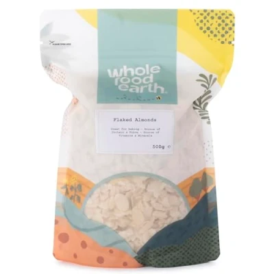 ✔ A WORLD OF GOODNESS: In a world full of fad diets, quick bites, and intricate recipes, don’t forget about the wonders of simple, nourishing food. We actively seek sustainable sources for our goods, asking our suppliers the tough questions that we know matter to our customers and making sure all our products are 100% GMO-Free. We follow strict hygiene processes to provide the best quality ingredients and have achieved a maximum of 5 Start food hygiene ratings. ✔ Flaked Almonds: Blanching removes the skin from the almond, resulting in a skinless, white almond with less bitter properties. The peeled almonds are then cut into flakes, which are recognised for their sweetness and, more precisely, their peculiar "Marzipan" flavour. Given its creamy flavour, it should come as no surprise that Flaked Almonds are ideal for adorning baked products and confectionaries, resulting in fantastically adorned sweets! ✔ HIGH-QUALITY INGREDIENTS: Almonds include two essential fatty acids that aid in the reduction of harmful cholesterol levels and the promotion of good skin and hair. Finally, almonds include two essential brain nutrients that are typically difficult to obtain from other foods. Almond eating is a highly suggested method of boosting your intake of essential brain nutrients. GMO-free Flaked Almonds are suitable for Vegans. ✔ INSTRUCTION FOR USE: Almonds have a creamy texture, is highly versatile and taste great raw, roasted, soaked, ground, blended or baked into your favourite foods. ✔ JUST THE GOOD STUFF / FULLY RECYCLABLE PACKAGING: We believe that good food shouldn’t cost the earth, as such, sustainability matters to us dearly. That’s why we work tirelessly to find sustainable solutions throughout our business. We rolled out all-new 100% recyclable packaging on Wholefood Earth products. The new packaging is apt for kerbside recycling. ✔ OUR STORY: Thank you for knowing It's what's on the inside that counts. For wanting a future without toxins in the food your children eat. For protecting the biodiversity that nurtures animal habitats and makes crops thrive. From everyone here at Wholefood Earth, thank you for using your buying power to make meaningful, informed choices that will continue to nourish our people and our planet today, tomorrow, and forever. We're here for a healthier earth, sustainable earth, wholesome earth.
