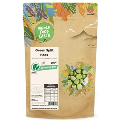 ✔ A WORLD OF GOODNESS: In a world full of fad diets, quick bites, and intricate recipes, don’t forget about the wonders of simple, nourishing food. We actively seek sustainable sources for our goods, asking our suppliers the tough questions that we know matter to our customers and making sure all our products are 100% GMO-Free. We follow strict hygiene processes to provide the best quality ingredients and have achieved a maximum of 5 Start food hygiene ratings. ✔ Green Split Peas: The lentil plant (Lens Culinaris) is one of our oldest food sources, hailing from Asia and North Africa. There are various types of lentils, but Brown, Red, Green, and Yellow lentils are the most widely used in cooking. Don't be deceived by their names; the last two are Split peas, a sort of "Field Pea." ✔ HIGH-QUALITY INGREDIENTS: Green Split Peas have a slight natural sweetness as well as a nutty, earthy flavour. They are an excellent source of fibre and vitamins. Lentils, like split peas, have minerals and are a wonderful source of protein. Green lentils from France are prized for their greater flavour and the fact that, while taking longer to cook, they remain together better during the cooking process. Green Split Peas are organic, GMO-free, and suitable for vegans. ✔ INSTRUCTION FOR USE: Green split peas are wonderful for making soups, casseroles & traditional Indian dishes like tarka dahl, kitcheri & aromatic stews. To Cook: 1. Rinse 2. Soak for 4-6 hours (or overnight). 3. Boil for 20-60 minutes depending on the recipe and ensure that there's always water in the pot. ✔ JUST THE GOOD STUFF / FULLY RECYCLABLE PACKAGING: We believe that good food shouldn’t cost the earth, as such, sustainability matters to us dearly. That’s why we work tirelessly to find sustainable solutions throughout our business. We rolled out all-new 100% recyclable packaging on Wholefood Earth products. The new packaging is apt for kerbside recycling. ✔ OUR STORY: Thank you for knowing It's what's on the inside that counts. For wanting a future without toxins in the food your children eat. For insisting on the accountability that traces food back to its source. For protecting the biodiversity that nurtures animal habitats and makes crops thrive. And, from everyone here at Wholefood Earth, thank you for using your buying power to make meaningful, informed choices that will continue to nourish our people and our planet today, tomorrow, and forever. We're here for a healthier, sustainable, and wholesome earth.