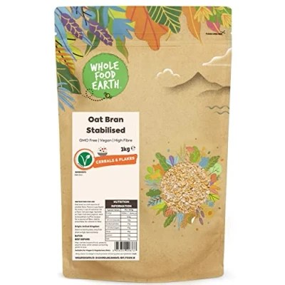A World of Goodness: Whole Food Earth Organic Oat Bran Stabilised – the essence of British-made oat perfection. Our delicate oat bran, separated from whole oats, carries a natural oat aroma, creamy hues, and a mild, slightly nutty flavour. Add this wholesome fibre boost to your recipes for a touch of nature's goodness. Rich and Flavorful: Organic oat bran, a gift from nature, adds body and a natural flavour to your dishes. Each bite not only resonates with the rustic charm of nature but also introduces a dose of dietary fibre, supporting digestive health and promoting a sense of fullness. High-quality Ingredients: Crafted with the utmost care, our Organic Oat Bran Stabilised embodies the purity of nature. It's 100% natural, non-GMO, and embraces the rich trio of fibre, minerals, and protein bestowed by nature. Enriched with oat beta-glucan, it's a powerhouse of calcium, iron, and magnesium. No added sugar, fillers, or fortified ingredients – just the unadulterated goodness of certified organic oats Instructions to Use: Whole Food Earth Organic Oat Bran Stabilised invites you to a simple, natural fibre boost. Start your day by adding a sprinkle to your breakfast cereal, porridge, or yoghurt. For savoury moments, enrich your soups and hotpots with the pure goodness of oat bran. Vegan-friendly and certified organic. Keep in a sealed container in a cool, dry location, shielded from direct sunlight. Just The Good Stuff / Fully Recyclable Packaging: Wholefood Earth is committed to sustainable practices, using fully recyclable packaging. This process involves efficient collection, separation, baling, shredding, and thorough washing. Materials are then melted and pelletized before being transformed into new packaging. This comprehensive approach minimizes waste and contributes to a healthier environment. ✔ OUR STORY: Thank you for knowing It's what's on the inside that counts. For wanting a future without toxins in the food your children eat. For insisting on the accountability that traces food back to its source. For protecting the biodiversity that nurtures animal habitats and makes crops thrive. And, from everyone here at Wholefood Earth, thank you for using your buying power to make meaningful, informed choices that will continue to nourish our people and our planet today, tomorrow, and forever. We're here for a healthier, sustainable, and wholesome earth.