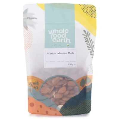 Wholefood Earth Organic Almonds Whole 250g Raw GMO Free Vegan High Fibre Source of Protein Certified