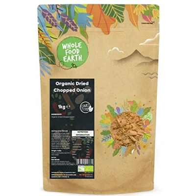 ✔ A WORLD OF GOODNESS: In a world of fad diets, quick bites, and intricate recipes, don’t forget about simple, nourishing organic wholefoods. Wholefood Earth is certified organic and has officially been awarded a 5-star Food Hygiene Rating ✔ Organic Dried Chopped Onion: Our chopped onion is produced from dried and chopped onions. Because dried onions have a sharper and bolder flavour, you won't need as many as fresh onions. They're highly adaptable and may be used to add flavour to a variety of meals. ✔ HIGH-QUALITY INGREDIENTS: Dried onions are minimal in salt, calories, and fat. They also include a variety of essential minerals. They are made using healthy, mature, chosen, hand-harvested, clean red onions that are free of damage, dirt, and cuts. To make dehydrated chopped onions, fresh onions are cored, peeled, cleaned, inspected, sliced, air dried, and sieved. Soups, stews, casseroles, curries, and savoury rice can all benefit from the addition of dried onion. ✔ JUST THE GOOD STUFF / FULLY RECYCLABLE PACKAGING: We intend to get the purest gifts of Mother Nature from all over the world and offer to our customers the purest, organic, and healthy gifts of nature. Our products are gathered from the best origins. The new packaging is apt for kerbside recycling and resealable for Long Lasting Freshness. ✔ OUR STORY: We believe that Mother Nature knows best when it comes to quality, nutrition, and taste. We actively seek sustainable sources for our goods, asking our suppliers the tough questions that we know matter to our customers