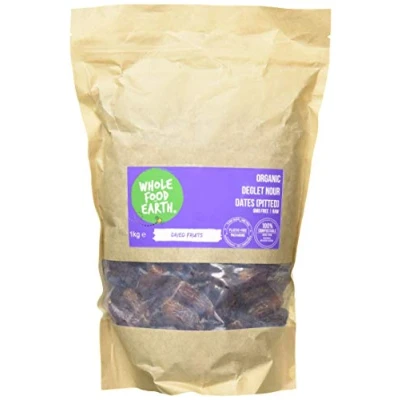 Wholefood Earth Organic Dried Deglet Nour Dates (Pitted) 1 kg GMO Free Raw Vegan High Fibre Certified