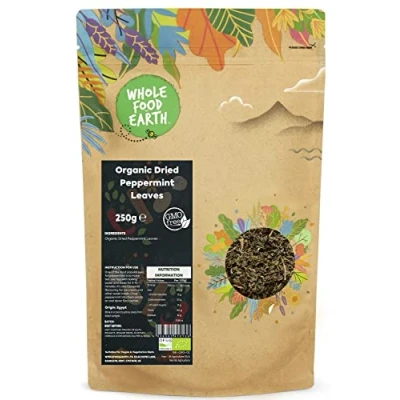 ✔ A WORLD OF GOODNESS: In a world of fad diets, quick bites, and intricate recipes, don’t forget about simple, nourishing organic wholefoods. Wholefood Earth is certified organic and has officially been awarded a 5-star Food Hygiene Rating ✔ Organic Dried Peppermint Leaves: Peppermint is a hybrid mint native to Europe that is a mix between watermint and spearmint. It has a strong, sweet odour as well as a warm, green, minty flavour with a refreshing aftertaste. Peppermint is well-known for its health advantages, in addition to being utilised as a culinary herb and flavouring for various dishes and beverages. ✔ HIGH-QUALITY INGREDIENTS: We have chosen these organic peppermint leaves for their health benefits and delicious flavour: they contain more menthol than spearmint or Moroccan mint and have an exceptionally fresh flavour. Peppermint may aid with breath freshening, energy levels, and focus. This mint also contains antimicrobial characteristics. ✔ JUST THE GOOD STUFF / FULLY RECYCLABLE PACKAGING: We intend to get the purest gifts of Mother Nature from all over the world and offer to our customers the purest, organic, and healthy gifts of nature. Our products are gathered from the best origins. The new packaging is apt for kerbside recycling and resealable for Long Lasting Freshness. ✔ OUR STORY: We believe that Mother Nature knows best when it comes to quality, nutrition, and taste. We actively seek sustainable sources for our goods, asking our suppliers the tough questions that we know matter to our customers