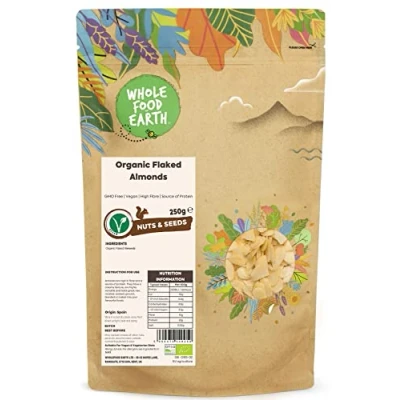 Wholefood Earth Organic Flaked Almonds 250g GMO Free Vegan High Fibre Source of Protein Certified