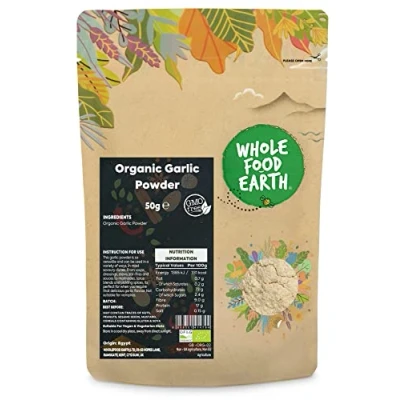 [CERTIFIED ORGANIC INTEGRITY] 100% pure organic garlic powder, grown to rigorous safety standards without synthetic pesticides or GMOs. Our "Clean Label" promise ensures a single-ingredient seasoning with zero fillers, binders, or hidden anti-caking agents. [NUTRIENT DENSITY & VITALITY] A concentrated source of dietary fibre and essential minerals like manganese. This "Micro-Nutrient Powerhouse" supports the 2026 UK trend for functional, "Anti-UPF" nutrition, helping to maintain normal immune function. [VERSATILE KITCHEN STAPLE] Delivers a rich, pungent profile that blends instantly into sauces, dry rubs, and dressings. Use as a non-UPF alternative to garlic salt, adding depth to roasted vegetables or homemade doughs without the need for peeling or chopping. [ETHICAL & SUSTAINABLE] Sustainably sourced and ethically farmed to promote soil health and biodiversity. Our 50g packs are designed for maximum freshness with 100% recyclable packaging, supporting a carbon-conscious and plastic-reduced pantry. [THE WHOLEFOOD EARTH PROMISE] Proudly based in Kent, we provide batch-tested purity and a 100% satisfaction guarantee. Enjoy professional-grade aromatics with dedicated UK-based customer support for a seamless, high-quality shopping experience.