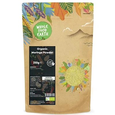 ✔ A WORLD OF GOODNESS: In a world of fad diets, quick bites, and intricate recipes, don’t forget about simple, nourishing organic wholefoods. Wholefood Earth is certified organic and has officially been awarded a 5-star Food Hygiene Rating ✔ Organic Moringa Powder: Moringa powder is made from dried and crushed moringa leaves, which are native to India but are now found all over the world. It tastes excellent, leafy, and almost spinach-like. It is mostly used in drinks, but it can also be used in baking to lend a green tint and a distinct flavour. ✔ HIGH-QUALITY INGREDIENTS: Moringa has been utilised for millennia because of its medical and health advantages. Moringa is often regarded as the most nutrient-dense plant on the planet, containing a wide range of proteins, vitamins, and minerals. It is also antifungal, antiviral, depressive, and anti-inflammatory. ✔ JUST THE GOOD STUFF / FULLY RECYCLABLE PACKAGING: We intend to get the purest gifts of Mother Nature from all over the world and offer to our customers the purest, organic, and healthy gifts of nature. Our products are gathered from the best origins. The new packaging is apt for kerbside recycling and resealable for Long Lasting Freshness. ✔ OUR STORY: We believe that Mother Nature knows best when it comes to quality, nutrition, and taste. We actively seek sustainable sources for our goods, asking our suppliers the tough questions that we know matter to our customers