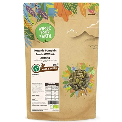 Wholefood Earth Organic Pumpkin Seeds GWS AA Austria 2kg Raw GMO Free Vegan High Fibre Protein Certified