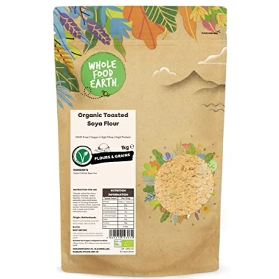 ✔ A WORLD OF GOODNESS: In a world of fad diets, quick bites, and intricate recipes, don’t forget about simple, nourishing organic wholefoods. Wholefood Earth is certified organic and has officially been awarded a 5-star Food Hygiene Rating ✔ NUTRITIOUS TOASTED SOYA FLOUR: Soya is the most widely consumed source of protein. Effortlessly absorb all flavours it is mixed with, which is how it integrates so easily into so many dishes. Pale-yellow flour has a delicious nuttiness & flexibility! ✔ HIGH-QUALITY INGREDIENTS: Soya flour is far superior nutritionally to conventional flour, this is because of its high protein, fibre and minerals. Make flatbreads, crisps, oriental snacks, pancakes and a whole host of other wonderful treats! ✔ JUST THE GOOD STUFF / FULLY RECYCLABLE PACKAGING: We intend to get the purest gifts of Mother Nature from all over the world and offer to our customers the purest, organic, and healthy gifts of nature. Our products are gathered from the best origins ✔ OUR STORY: We believe that Mother Nature knows best when it comes to quality, nutrition, and taste. We actively seek sustainable sources for our goods, asking our suppliers the tough questions that we know matter to our customers