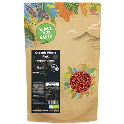 ✔ A WORLD OF GOODNESS: In a world of fad diets, quick bites, and intricate recipes, don’t forget about simple, nourishing organic wholefoods. Wholefood Earth is certified organic and has officially been awarded a 5-star Food Hygiene Rating ✔ Organic Whole Pink Peppercorns: Pink peppercorns are made from the dried berries of the Peruvian pepper tree, a South American native. Pink peppercorns are not related to green, black, or white peppercorns, but acquired their name from their similar appearance and spicy flavour. They have a flavour comparable to black pepper but are gentler, sweeter, and fruity. Pink pepper also gives a splash of colour to whatever you're cooking. ✔ HIGH-QUALITY INGREDIENTS: Our whole pink peppercorns are responsibly obtained, have a pleasing aroma, and can be used in a wide range of dishes. Pink peppercorns are high in fibre. They are also high in antioxidants and have antibacterial, anti-inflammatory, and antiviral properties. ✔ JUST THE GOOD STUFF / FULLY RECYCLABLE PACKAGING: We intend to get the purest gifts of Mother Nature from all over the world and offer to our customers the purest, organic, and healthy gifts of nature. Our products are gathered from the best origins. The new packaging is apt for kerbside recycling and resealable for Long Lasting Freshness. ✔ OUR STORY: We believe that Mother Nature knows best when it comes to quality, nutrition, and taste. We actively seek sustainable sources for our goods, asking our suppliers the tough questions that we know matter to our customers