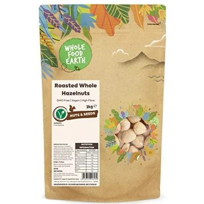 ✔ A WORLD OF GOODNESS: In a world full of fad diets, quick bites, and intricate recipes, don’t forget about the wonders of simple, nourishing food. We actively seek sustainable sources for our goods, asking our suppliers the tough questions that we know matter to our customers and making sure all our products are 100% GMO-Free. We follow strict hygiene processes to provide the best quality ingredients and have achieved a maximum of 5 Start food hygiene ratings. ✔ Roasted Whole Hazelnuts: Hazelnuts are a nutritious snack, and as many of us are aware, they create delicious chocolate spreads. Hazelnuts got their name from the Hazel Tree, which is where they are gathered. ✔ HIGH-QUALITY INGREDIENTS: When it comes to treats, hazelnuts and pecans are the nuts to beat, but did you know that they contain vitamins. As a result, hazelnuts will keep you looking great! Vanity aside. Roasted Whole Hazelnuts are vegan-friendly and free of GMOs. ✔ INSTRUCTION FOR USE: Hazelnuts have a wonderfully subtle sweet flavour and a firm structure yet brittle crunch. This makes them not only delicious as a standalone snack but also a great accompaniment to any other nuts, seeds, fruit, and sweet snacking fodder. Cooking hazelnuts into cakes is a must. ✔ JUST THE GOOD STUFF / FULLY RECYCLABLE PACKAGING: We believe that good food shouldn’t cost the earth, as such, sustainability matters to us dearly. That’s why we work tirelessly to find sustainable solutions throughout our business. We rolled out all-new 100% recyclable packaging on Wholefood Earth products. The new packaging is apt for kerbside recycling. ✔ OUR STORY: Thank you for knowing It's what's on the inside that counts. For wanting a future without toxins in the food your children eat. For insisting on the accountability that traces food back to its source. For protecting the biodiversity that nurtures animal habitats and makes crops thrive. And, from everyone here at Wholefood Earth, thank you for using your buying power to make meaningful, informed choices that will continue to nourish our people and our planet today, tomorrow, and forever. We're here for a healthier, sustainable, and wholesome earth.