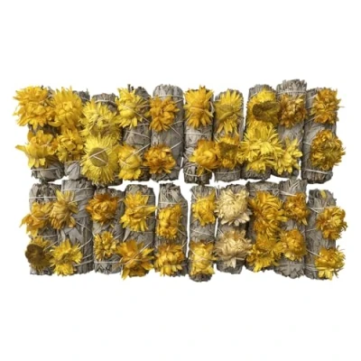Wholesale Sunflower and White Sage Smudge Sticks, 4", 20 Pieces