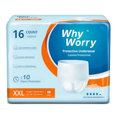 WhyWorry Incontinence Pants for Women and Men, Disposable Adult Pull Ups with Overnight Absorbency, Odor Control, Unisex, XXLarge, 16 Count