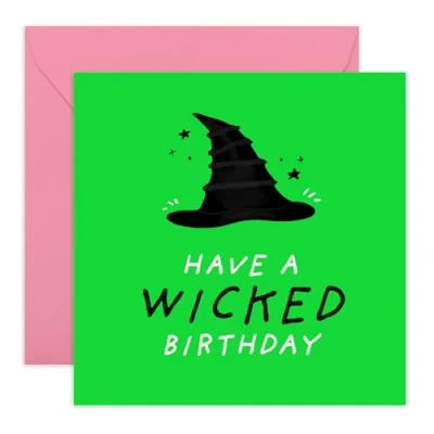 Wicked Birthday Card Fun Witch Hat Design Halloween for Friends, BFF, Bestie, Family, Him or Her Magical Green Theme Comes with Stickers