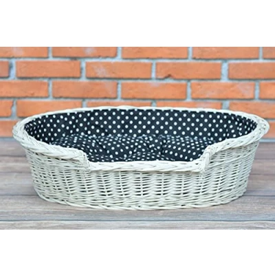 Full comfort for your doggy: The wicker pet bed will be a comfortable bed for your pet and a great place to play and rest, and its softness will please the dogs every moment spent lazing around. Each wicker dog bed comes with a plush cushion, offering superior comfort and support for your furry friend. The soft padding provides a cozy surface for your pet to curl up on, promoting better sleep and overall well-being Premium quality ecological materials: Hand-woven, oval dog bedding for animals made of the highest quality ecological wicker Outer fabric: 100% cotton and filling: 100% polyester. The lowered hem makes it easier for your pet to get in and out pet beds. Puppy beds painted with ecological paints that are safe for animals Beautiful appearance: crafted from premium-quality wicker, ensuring long-lasting durability and resistance to wear and tear. The sturdy construction provides a safe and secure resting place for your pet, giving you peace of mind knowing they are comfortable and supported. Aesthetically finished and decorative appearance creates a unique vintage style of the dog bed. Your pet will look like a prince in his own dog house Easy to clean: our wicker dog bed is designed for convenience and practicality, featuring a removable cushion for easy cleaning. Simply remove the cushion and clean it with a damp cloth for hassle-free maintenance to keep your pet's bed clean and fresh Safety: Providing your pet with a comfortable and supportive bed is essential for promoting better sleep and overall health. Our wicker dog bed offers the perfect combination of comfort and support, allowing your pet to rest and relax in style