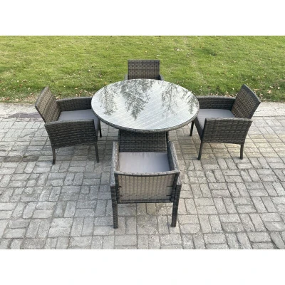 Wicker pe Outdoor Rattan Garden Furniture Arm Chair And Table Dining Sets 4 Seater Large Round Dark Grey Mixed Fimous