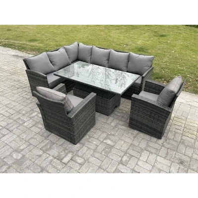 Wicker pe Outdoor Rattan Garden Furniture Set Height Adjustable Rising Lifting Table Sofa Dining with 2 Armchairs Dark Grey Mixed Fimous