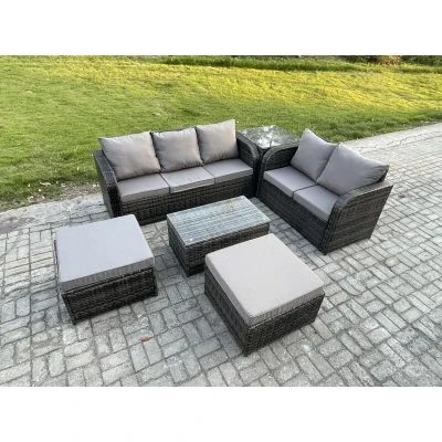 Wicker pe Rattan Garden Furniture Set 7 Seater Outdoor Lounge Sofa with Love Coffee Table 2 Big Footstool Side Dark Grey Mixed Fimous