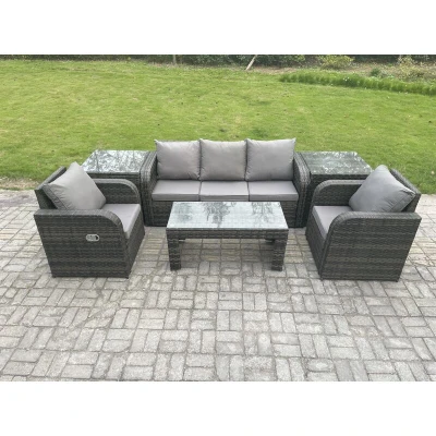 Wicker pe Rattan Garden Furniture Set Outdoor Lounge Sofa with Reclining Chair Coffee Table 2 Side Tables Dark Grey Mixed Fimous