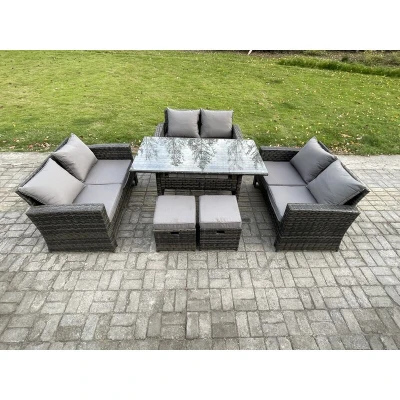 Wicker pe Rattan Garden Furniture Sets Outdoor Lounge Sofa Set with Oblong Dining Table Double Seat 2 Small Footstools Dark Grey Mixed Fimous