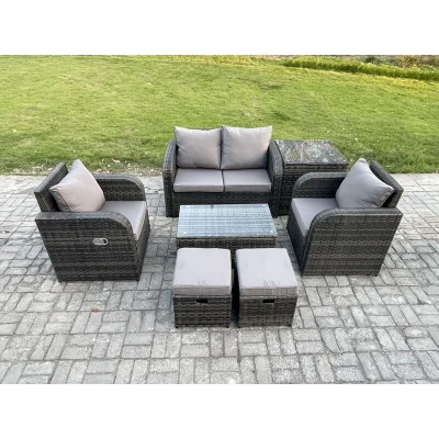 Wicker pe Rattan Outdoor Furniture Set Garden Love Sofa Coffee Table 2 Armchair Side Small Footstools Dark Grey Mixed Fimous