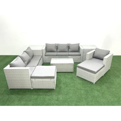 Wicker pe Rattan Sofa Garden Furniture Set with Armchair Oblong Coffee Table 2 Big Footstools Side Tables Light Grey Mixed Fimous