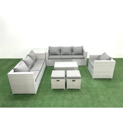 Wicker pe Rattan Sofa Garden Furniture Set with Armchair Oblong Coffee Table 2 Small Footstools Side Light Grey Mixed Fimous