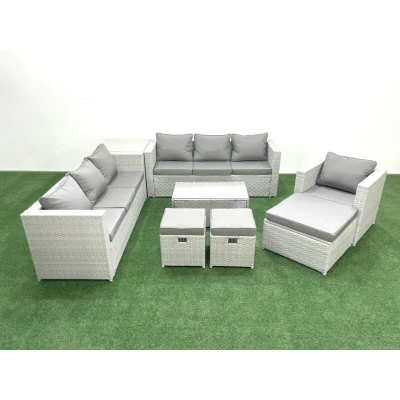 Wicker pe Rattan Sofa Garden Furniture Set with Armchair Oblong Coffee Table 3 Footstools Side Light Grey Mixed Fimous