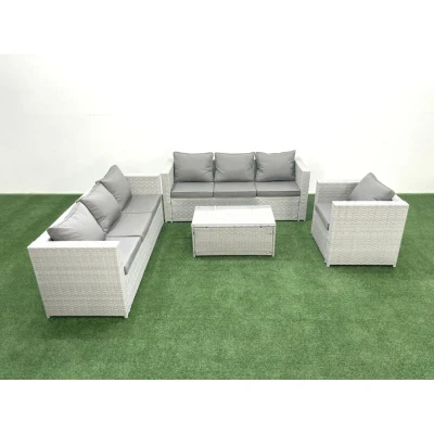 Wicker pe Rattan Sofa Garden Furniture Set with Armchair Oblong Coffee Table Light Grey Mixed Fimous