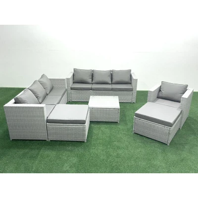 Wicker pe Rattan Sofa Garden Furniture Set with Armchair Square Coffee Table 2 Big Footstools Light Grey Mixed Fimous