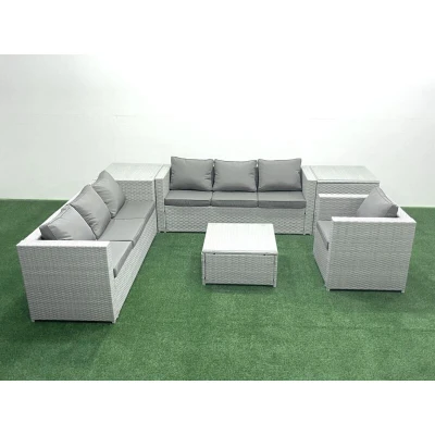Wicker pe Rattan Sofa Garden Furniture Set with Armchair Square Coffee Table 2 Side Tables Light Grey Mixed Fimous
