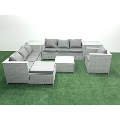 Wicker pe Rattan Sofa Garden Furniture Set with Armchair Square Coffee Table Big Footstool 2 Side Tables Light Grey Mixed Fimous