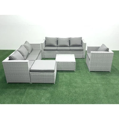 Wicker pe Rattan Sofa Garden Furniture Set with Armchair Square Coffee Table Big Footstool Light Grey Mixed Fimous