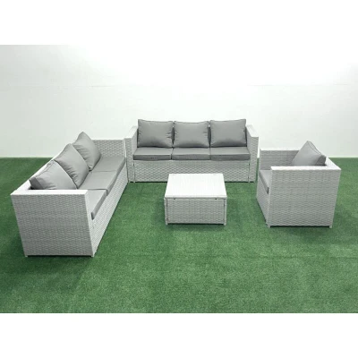 Wicker pe Rattan Sofa Garden Furniture Set with Armchair Square Coffee Table Light Grey Mixed Fimous